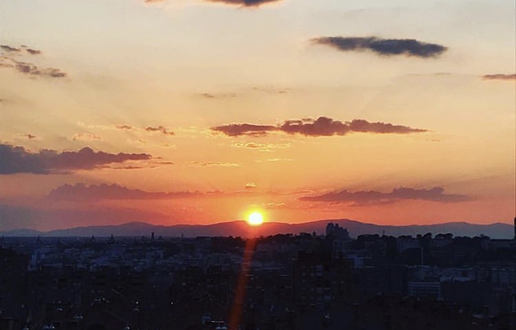 Ya de camino a mi pasadizo medieval (dicen que antaño fue un foso de agua) paso por Disfraces Paco y, como el chico (siempre me pareció que tenía cara de Luís) ya se dispone a bajar la reja, respiro aliviada: ‘otra noche que no se escapan esos salvajes’. Después sonrío y pienso que, en realidad, todos llegamos a un lugar con más monstruos de los que nos llevamos cuando nos vamos. Imagino que ya habla la melancolía, esa que se adhiere como el musgo a las paredes de los pisos vacíos. Porque ahora sí. Se me han acabado las balas. Y aunque tú no lo sepas, yo sigo subiéndome a los cerros. Mientras repaso cúpulas y recorto siluetas de montañas, he de reconocer que es verdad, que algo tiene el cielo de Madrid. También confieso que cuando veo un rayo me pongo a contar mentalmente, con la esperanza de que esos aviones que duermen en Teruel aparezcan de pronto y vuelvan a dejar su rastro en el atardecer más vivo, como ese que te bebiste a sorbitos tras más de sesenta días de soledad.
